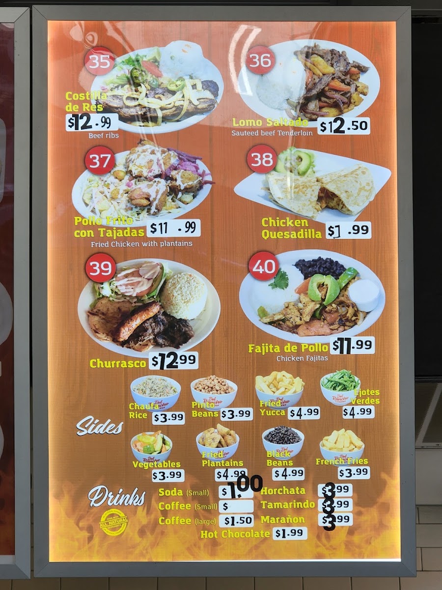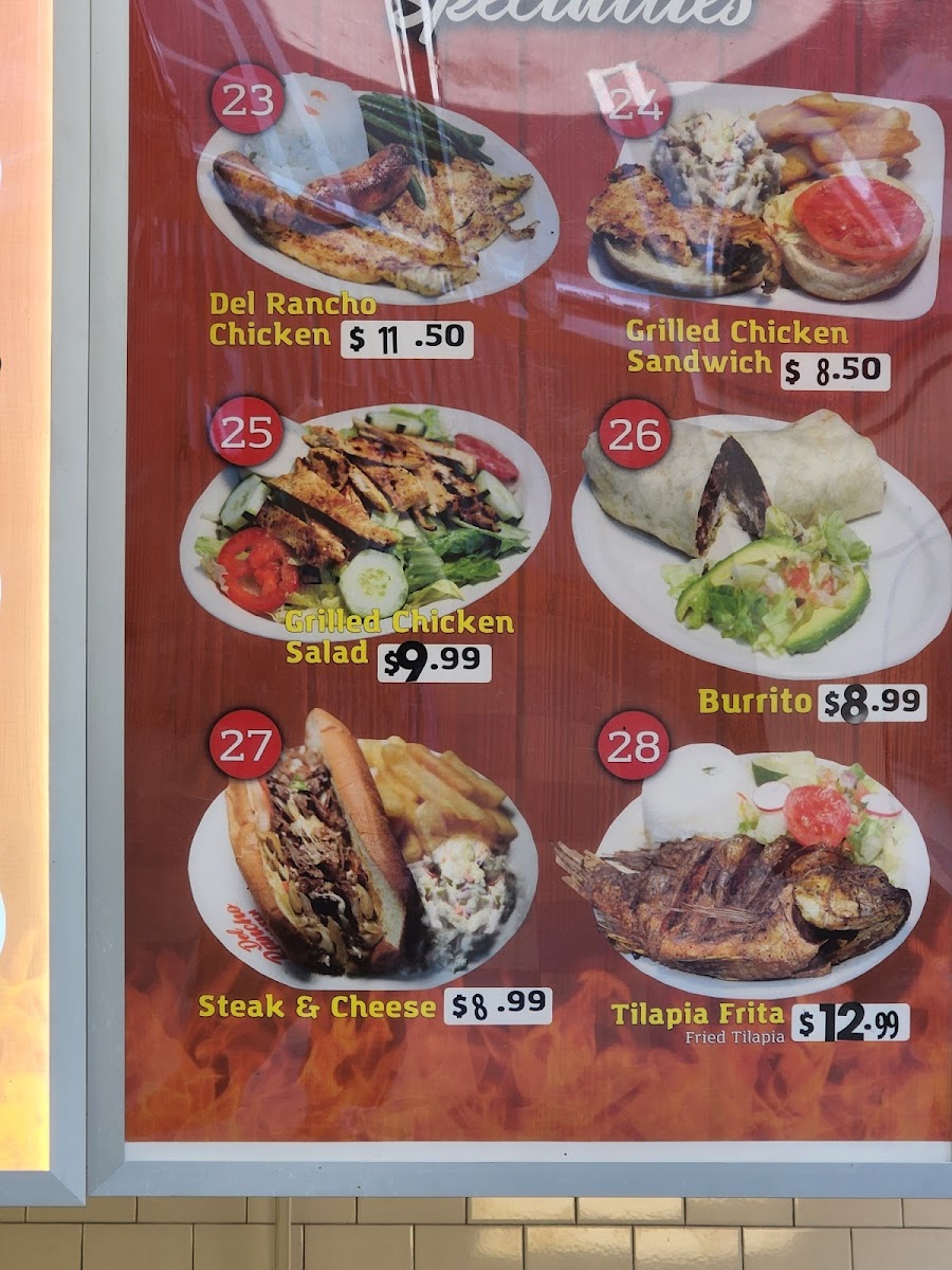 For those who prefer a savory breakfast, the Fried Plantains are a must-try, offering a sweet and crispy start to your day. When it comes to specialties, Del Rancho Chicken shines with options like the Mixed Fajitas, a flavorful mix of grilled meats served with all the right fixings. If you’re craving something cheesy and satisfying, the Chicken Quesadilla is a perfect option, while the Shrimp Entomatados offers a unique and tasty twist with shrimp and a rich tomato sauce. The Chicken Fajitas and Grilled Chicken Salad are also great choices for a balanced, delicious meal.