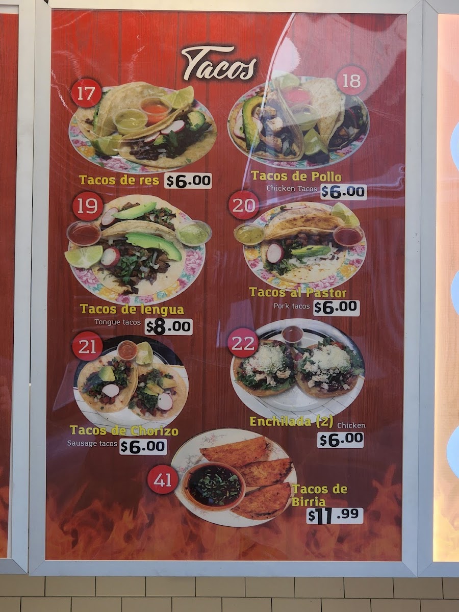 Del Rancho Chicken, located at 1065 W Patrick St, Frederick, MD 21702, offers a delicious and diverse menu that is sure to satisfy any craving. Whether you're in the mood for a light snack or a hearty meal, there is something for everyone. Starting with their Tacos, you can enjoy the flavorful Beef Tacos, a classic choice for taco lovers.